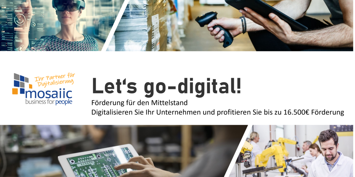 Förderprogramm go-digital – Unterstützung Ihrer Digitalisierung Helfen Sie Ihren Mitarbeitern Ihr Unternehmen erfolgreicher zu machen Als eines der autorisierten Beratungsunternehmen ermöglichen wir Ihnen 50% Förderung der Investitionssumme mit bis zu 16.500,- € durch das Förderprogramm go-digital des Bundesministeriums für Wirtschaft und Klimaschutz. Wir unterstützen Sie dabei nicht nur in ihrem Tagesgeschäft sondern übernehmen darüber hinaus alle Formalitäten der Förderung für